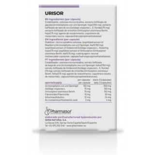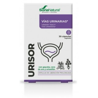 SORIA Natural Urisor es un complemento alimenticio formulado con una mezcla de extractos naturales de gayuba, vara de oro y ortosifón, conocidos por su acción antiséptica en las vías urinarias.