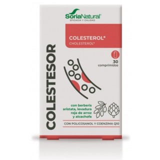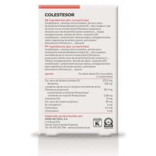 SORIA Natural Colestesor es un complemento alimenticio que ayuda a mantener niveles normales de colesterol y triglicéridos, gracias a su fórmula con levadura roja de arroz, alcachofa y berberina.