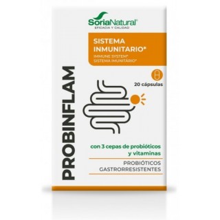 SORIA Natural Probinflam es un complemento con probióticos gastrorresistentes que ayuda a proteger la mucosa intestinal y contribuye al funcionamiento normal del sistema inmunitario.