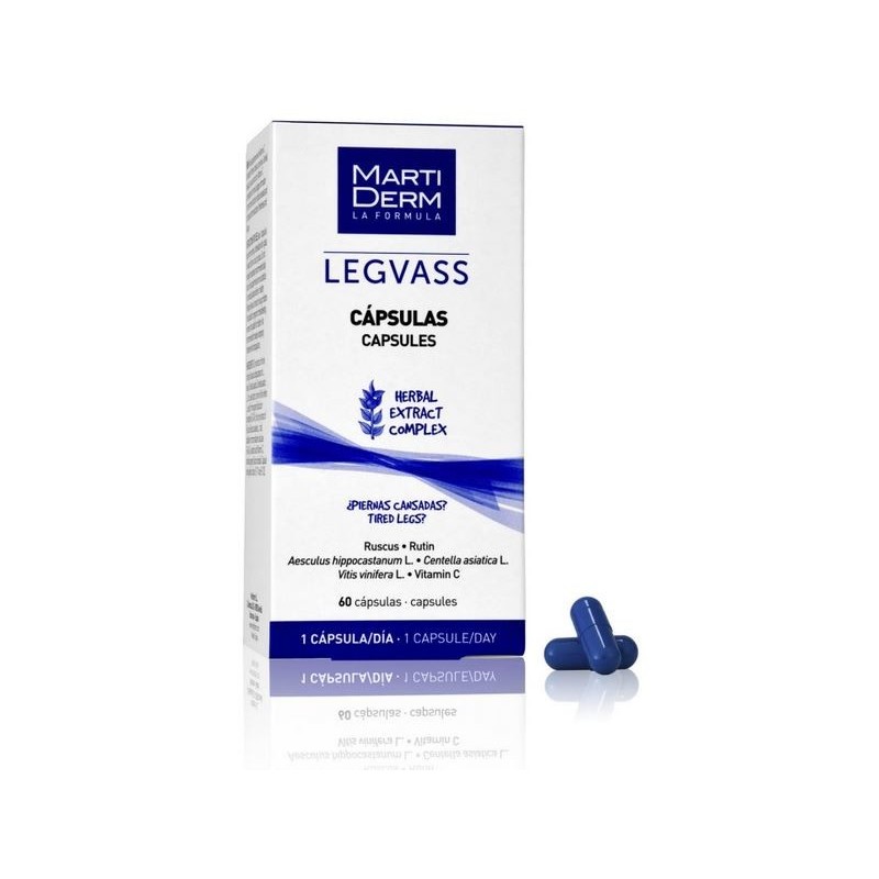 Legvass Cápsulas es un complemento alimenticio que contiene castaño de indias y centella asiática, entre otros ingredientes que disminuyen la sensación de piernas cansadas, pesadez y retención de líquidos. Reduce el hormigueo de las piernas y la hinchazón, además de favorecer la mircocirculación y eliminar las rojeces.