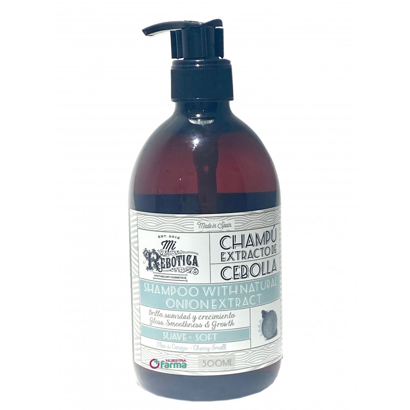 El Champú suave con extracto de Cebolla de Mi Rebotica es un champú sin sulfatos para la limpieza del cabello al a vez que estimula el crecimiento capilar.