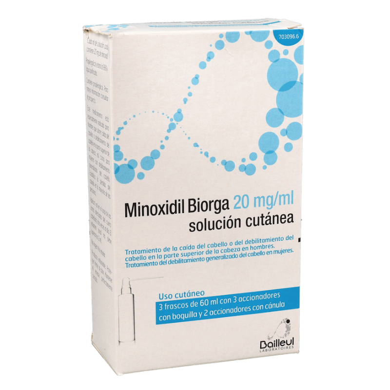 MINOXIDIL BIORGA 20 mg/ml SOLUCION CUTANEA 3 FRASCOS 60 ml + 3 ACCIONADORES DE BOQUILLA Y 2 ACCIONAD