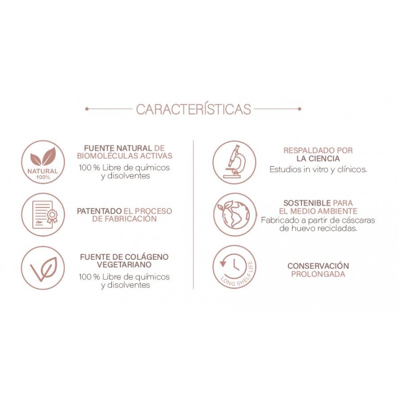 La fórmula de MIOXBEL Ovoderm se basa en un complejo natural extraído de la membrana de la cáscara de huevo, rica en elementos bioactivos esenciales. Entre sus componentes destacan: