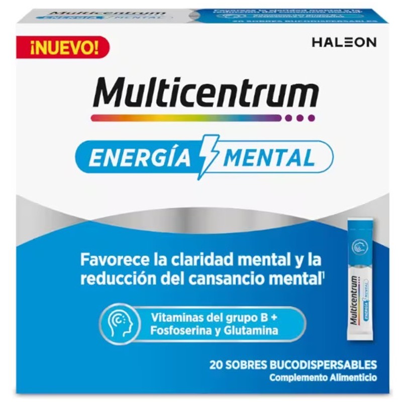 Multicentrum Energía Mental es un complemento alimenticio en polvo bucodispersable desarrollado para aportar un impulso extra en momentos en los que el cerebro requiere mayor claridad y rendimiento. Su fórmula combina vitaminas del grupo B, fosfoserina y glutamina, componentes esenciales que ayudan a mantener la salud cerebral, la función psicológica y la energía mental. Su formato en sobres, fáciles de tomar sin agua, lo convierte en una opción práctica y eficaz para quienes buscan potenciar sus capacidades cognitivas de manera cómoda y rápida.