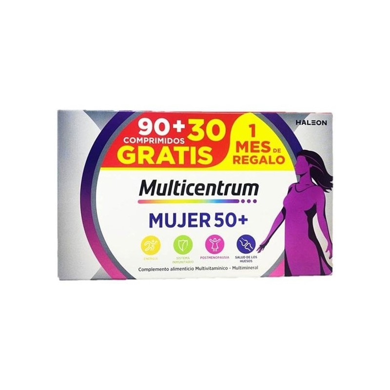 Multicentrum Mujer 50+ está especialmente indicado para mujeres mayores de 50 años que desean mantener su bienestar general, vitalidad y energía a pesar de los cambios hormonales asociados a la menopausia y al envejecimiento natural.