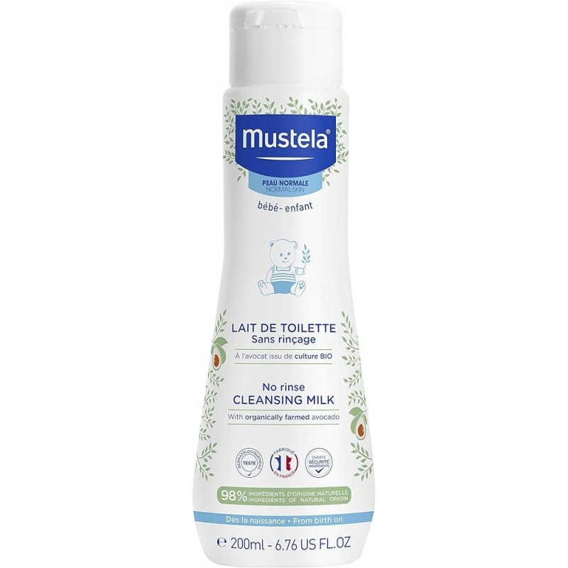 Mustela Loción Limpiadora sin Aclarado es una loción especialmente formulada para limpiar con suavidad la cara y la zona del pañal del bebé desde su nacimiento. Su fórmula de alta tolerancia contiene un 98% de ingredientes de origen natural, incluyendo aguacate bio, que elimina las impurezas de forma suave y eficaz, favoreciendo la hidratación y dejando la piel del bebé suave y flexible. Esta leche limpiadora es adecuada para la cara y el cuerpo del bebé, proporcionando una limpieza completa sin necesidad de aclarado.