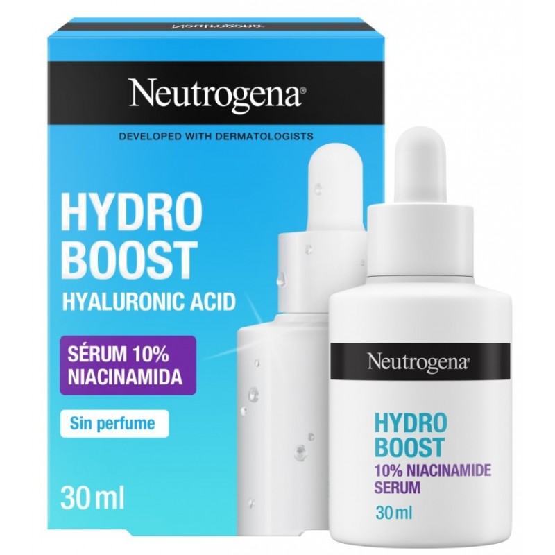 Neutrogena Hydro Boost Serum Niacinamida es un potente suero facial hidratante de acción múltiple diseñado para mejorar visiblemente el aspecto de la piel.