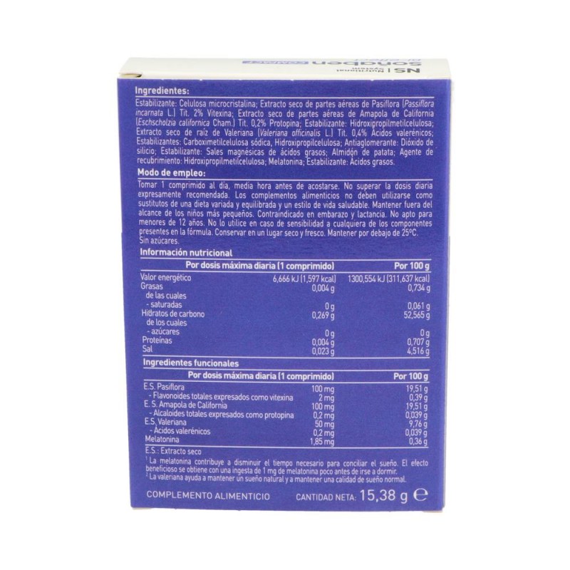 NS Soñaben Bi-Effect Compact ayuda a conciliar el sueño y a reducir los despertares nocturnos gracias a su tecnología bicapa con melatonina, pasiflora, valeriana y amapola de California. Favorece un sueño reparador y de calidad con comprimidos compactos y fáciles de tragar.
