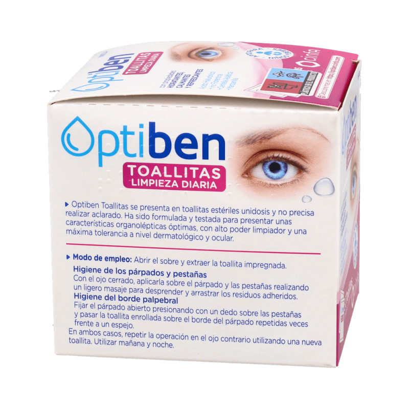 Optiben Toallitas Limpieza Diaria son unas toallitas oftálmicas diseñadas para la higiene diaria de los párpados, las pestañas y el borde palpebral.