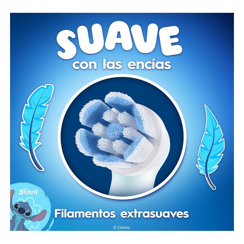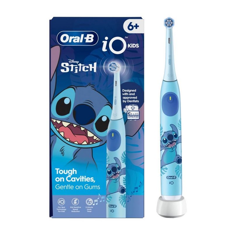 ORAL-B iO Kids Stitch Cepillo Eléctrico es un innovador cepillo de dientes diseñado especialmente para niños a partir de 6 años, que combina la tecnología más avanzada de Oral-B con la diversión del personaje Stitch de Disney. Desarrollado y aprobado por dentistas, este cepillo garantiza una limpieza profunda, suave y eficaz que ayuda a prevenir las caries desde una edad temprana.