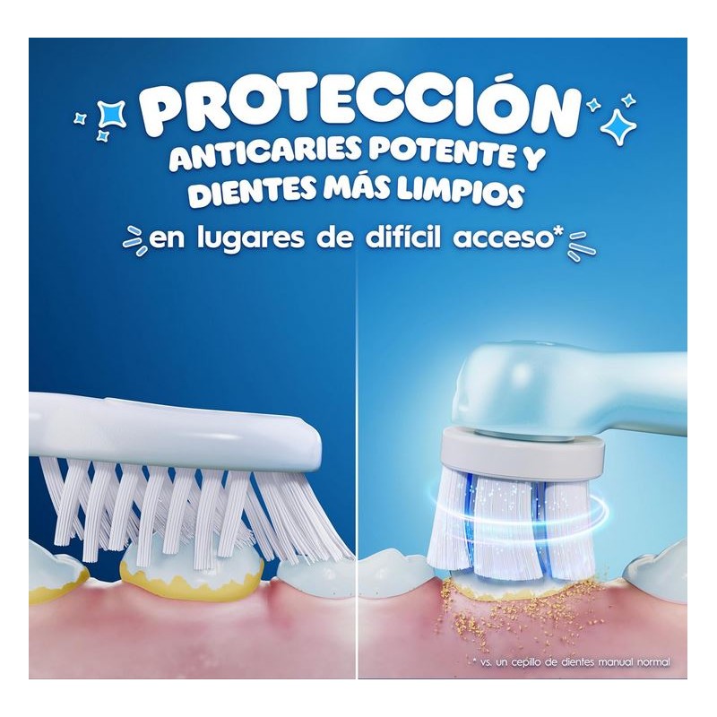 - Mayor eliminación de placa comparado con cepillos manuales infantiles.