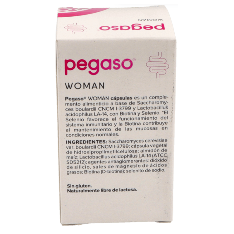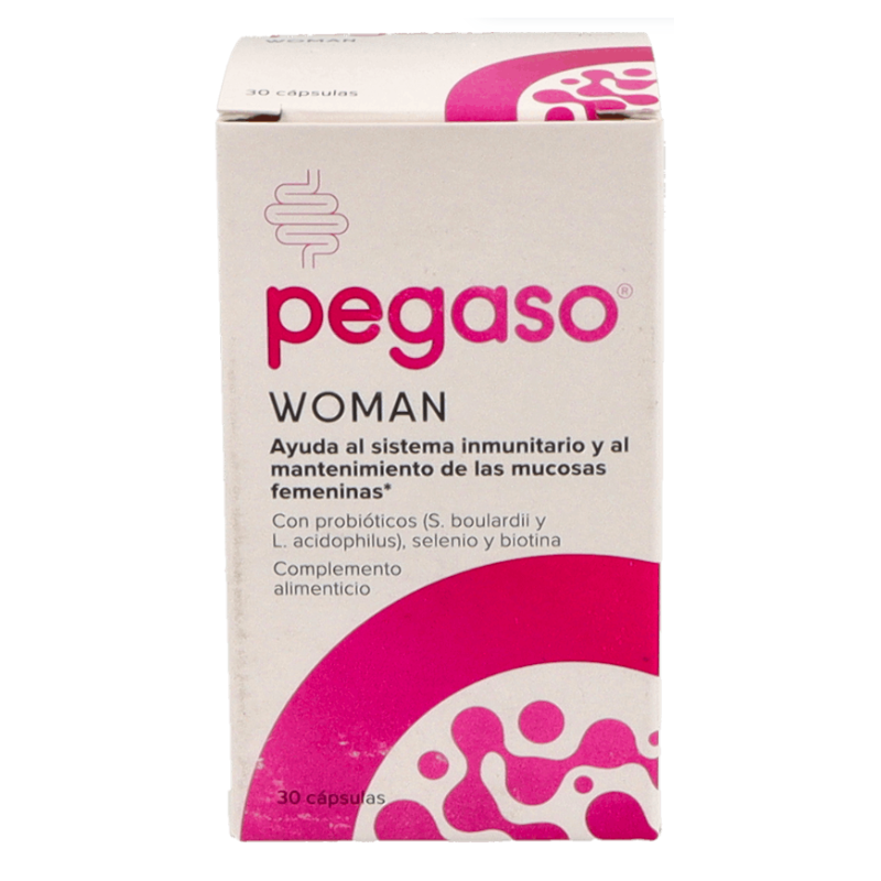 Pegaso Woman es un suplemento especialmente diseñado para el cuidado de la salud íntima femenina. Su exclusiva fórmula combina probióticos, Biotina y Selenio, ingredientes clave que contribuyen al mantenimiento de las mucosas en condiciones normales y al correcto funcionamiento del sistema inmunitario.