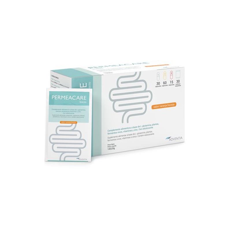 Permeacare Inicio es un complemento alimenticio diseñado para apoyar la salud intestinal y restaurar la permeabilidad intestinal. Su fórmula exclusiva combina L-glutamina, probióticos, extractos de plantas, vitaminas y zinc, organizados en tres fases secuenciales para optimizar su eficacia y adaptarse a las necesidades del organismo.