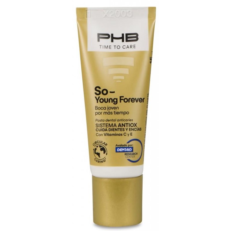 PHB Time To Care So-Young Forever Pasta Dental es la opción ideal para quienes buscan un cuidado bucal completo, eficaz y sostenible. Su fórmula antioxidante, vegana y libre de gluten, junto a su envase reciclable, combina protección dental, frescor y compromiso con el medio ambiente.