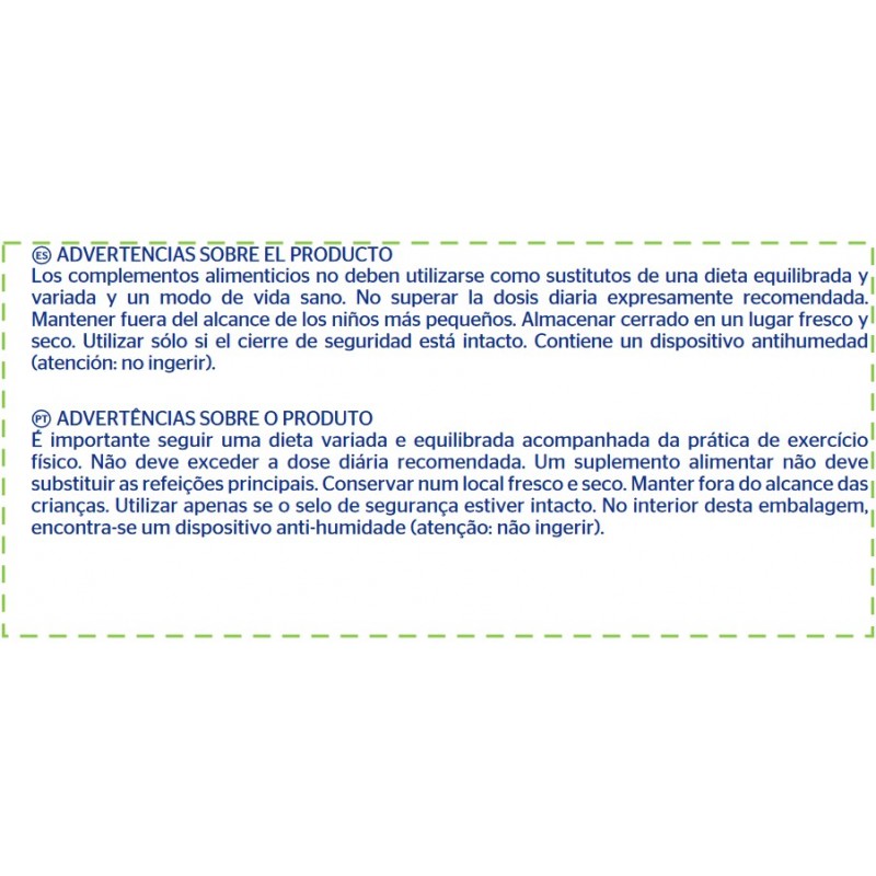 Es importante no exceder la dosis recomendada. No se recomienda su uso durante el embarazo o la lactancia sin la supervisión de un profesional de la salud. Las personas con condiciones médicas preexistentes o que estén tomando otros medicamentos deben consultar a un médico antes de iniciar cualquier régimen de suplementación. Mantener fuera del alcance de los niños y no utilizar como sustituto de una dieta equilibrada.
