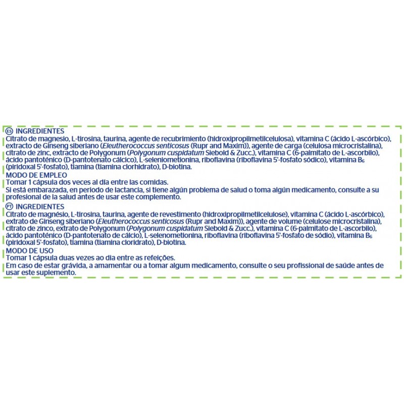 - Apoyo al rendimiento mental: Las vitaminas del complejo B, junto con la L-tirosina y el ginseng siberiano, contribuyen a un funcionamiento cognitivo normal, mejorando la concentración y la memoria.