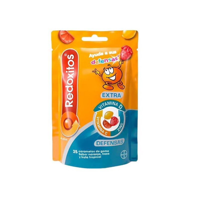 Redoxitos Extra Defensas son caramelos de goma disponibles en tres deliciosos sabores: naranja, fresa y fruta tropical. Están especialmente formulados para proporcionar una combinación clave de Vitamina C, Zinc y un extra de Vitamina D, diseñada para ayudar a fortalecer el sistema inmunitario de los más pequeños (a partir de los 4 años). Estos caramelos de goma son fáciles de consumir, convirtiendo el refuerzo inmunitario en una experiencia agradable para los niños.