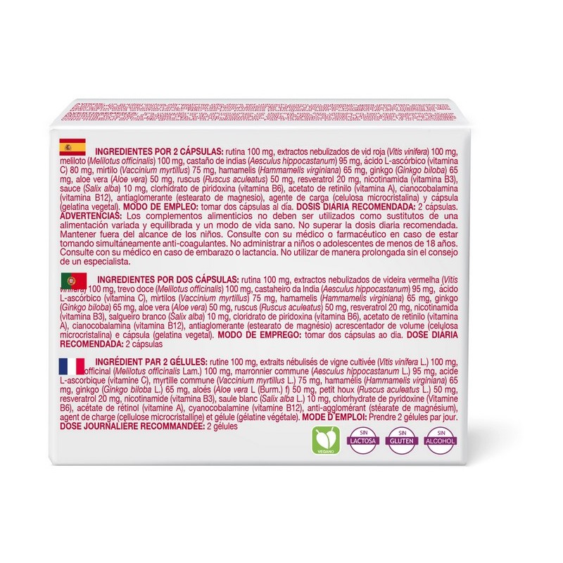 - Estimula la circulación en los microvasos y refuerza la integridad de las paredes capilares.