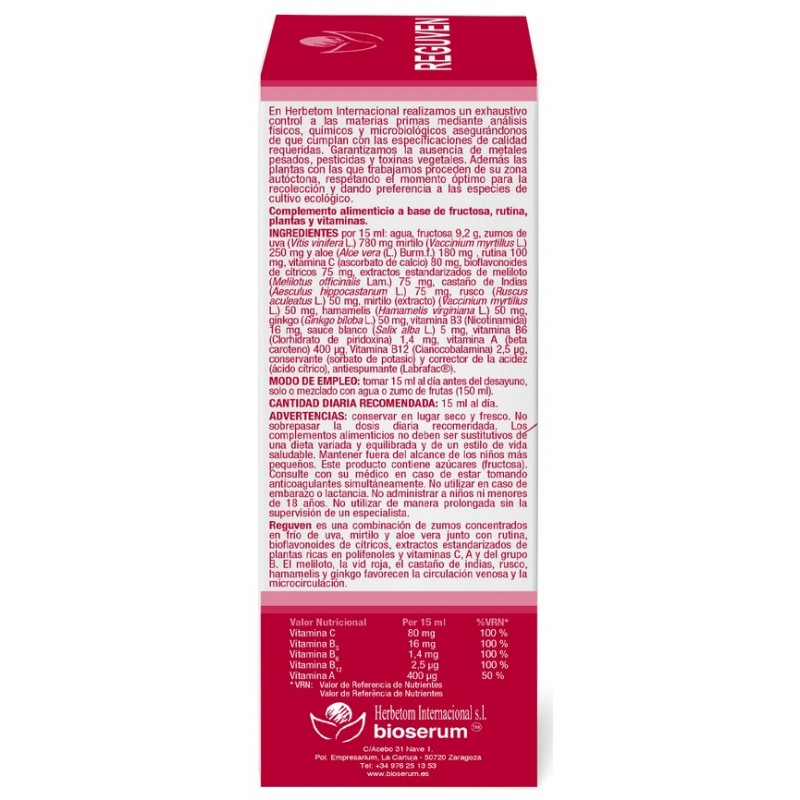No superar la dosis diaria recomendada. Mantener fuera del alcance de los niños más pequeños. No debe utilizarse como sustituto de una dieta variada y equilibrada ni de un estilo de vida saludable. En caso de embarazo, lactancia o tratamiento médico, consultar previamente con un profesional de la salud. Reguven Jarabe no está indicado para personas alérgicas a alguno de sus componentes.