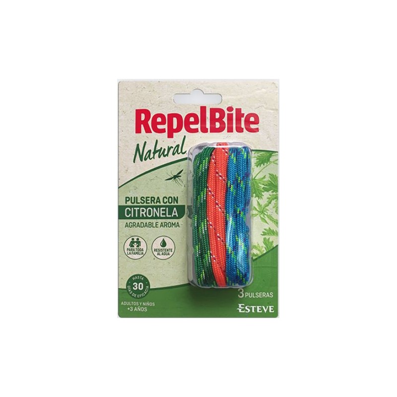 RepelBite Natural Pulsera es un repelente de mosquitos en formato pulsera, fabricado con cuerda de nylon aromática e impregnado con esencias naturales de citronela, un ingrediente conocido por su efecto repelente frente a insectos.