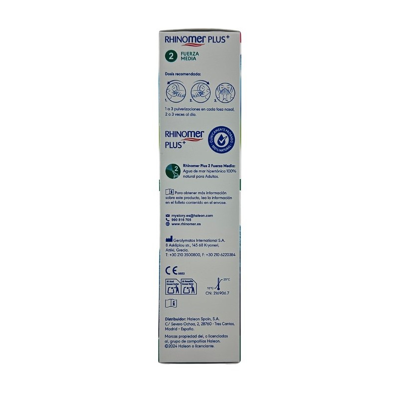 RHINOMER PLUS ADULTOS FUERZA 2 MEDIA SPRAY es una solución efectiva, natural y segura para la congestión nasal y la higiene diaria. Su formulación sin químicos y su facilidad de uso lo convierten en un aliado indispensable para el cuidado nasal.