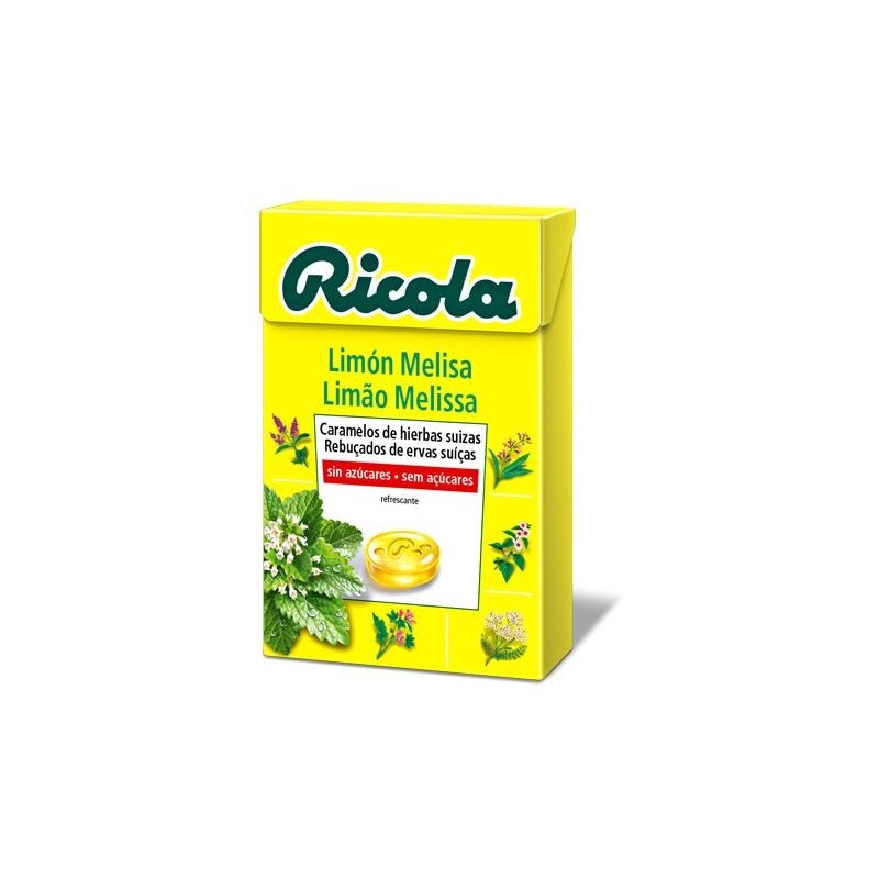 Isomaltosa, acidulante (ácido cítrico), vitamina C, extracto (0,3%) de melisa y de la mezcla de hierbas Ricola, aroma natural de cítrico, edulcorantes (aspartamo, acesulfamo K), aroma natural de menta, mentol, colorante (betacarotenos).
