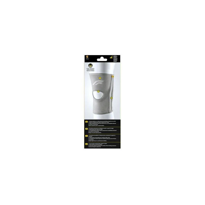 Para ponerla, deslizar la rodillera hasta la rodilla y hasta que la apertura rotuliana se adapte perfectamente a la rótula.