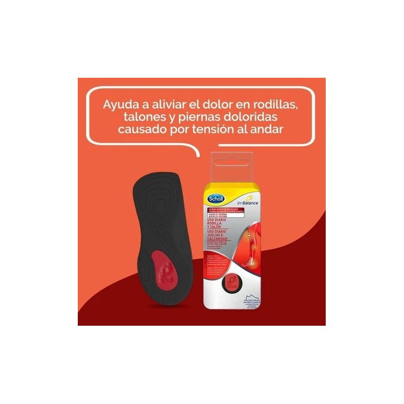 Las plantillas Scholl In-Balance para el alivio del dolor de rodilla y talón ayudan a aliviar el dolor en rodillas, talones y piernas doloridas causado por tensión al andar.