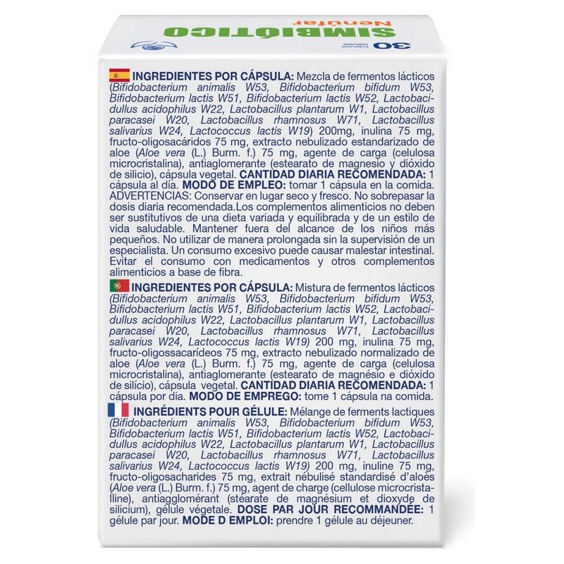 Simbiótico Nenúfar es un complemento alimenticio formulado con una combinación sinérgica de 10 cepas probióticas, prebióticos como la inulina y los fructooligosacáridos (FOS), además de aloe vera, lo que lo convierte en un apoyo ideal para el equilibrio y bienestar del sistema digestivo. Esta fórmula está respaldada por la tecnología ProbioAct®, que protege, nutre y potencia la actividad de las bacterias beneficiosas a lo largo del tracto gastrointestinal.