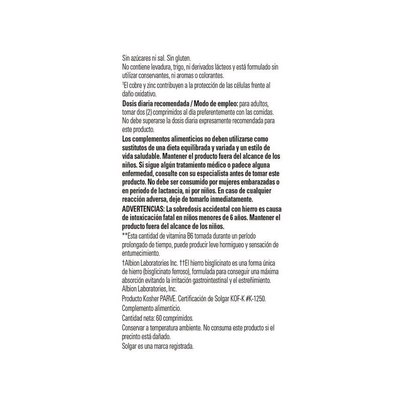 • Incluye hierro en forma de bisglicinato, que ha demostrado que es menos irritante gastrointestinal y no produce estreñimiento.
