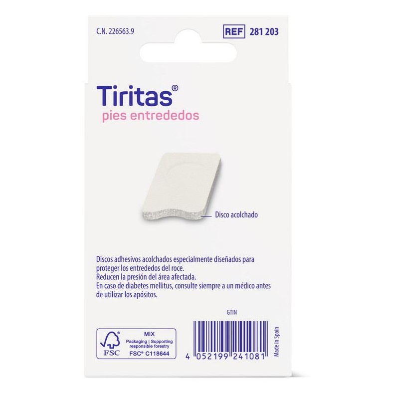 Tiritas Pies para Entrededos está indicado para aquellas personas que sufren molestias, rozaduras o dolor en la zona interdigital del pie, provocadas por el uso de calzado ajustado, actividades físicas intensas o simplemente por la fricción cotidiana. Este producto es ideal para prevenir la aparición de heridas, callos y ampollas, proporcionando una barrera protectora que minimiza el contacto directo con el calzado. Su uso es recomendable tanto para personas activas que pasan muchas horas de pie, como para quienes padecen de pies sensibles o tienen predisposición a lesiones en estas áreas.