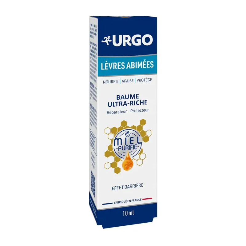 Urgo Bálsamo Labios Dañados es un tratamiento labial intensivo especialmente diseñado para nutrir, reparar y proteger los labios secos, muy secos o agrietados. Su fórmula ultra rica, con aproximadamente un 92% de ingredientes de origen natural, combina principios activos altamente nutritivos como la miel purificada, la manteca de karité y el aceite de girasol. Gracias a su textura densa y protectora, crea una película que repara la piel dañada, calma la tirantez y protege frente a agresiones externas como el frío, el viento o los ambientes secos.