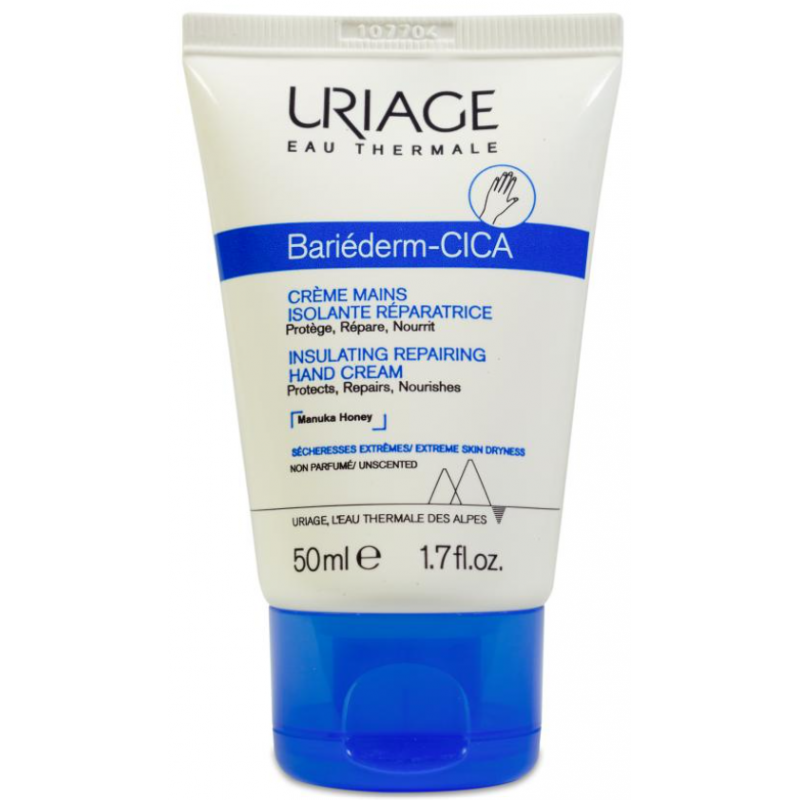 Uriage BARIÉDERM-CICA Crema de Manos Aislante Reparadora es una crema barrera para manos muy secas y dañadas que aísla, protege y repara frente a agresiones diarias. Con Agua Termal de Uriage y miel de Manuka, alivia, suaviza y nutre sin dejar sensación pegajosa. Resistente al agua e ideal para uso frecuente.