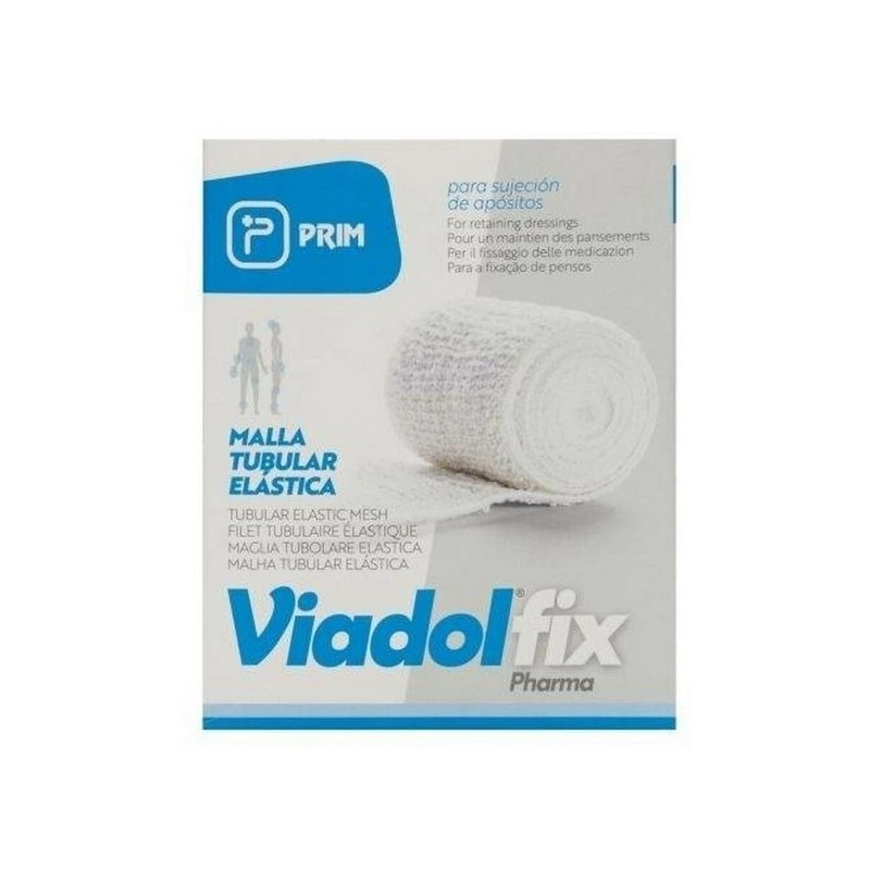 Viadolfix Malla Tubular Elástica Malla tubular elástica para la sujeción de todo tipo de apósitos, compresas o protección en cualquier parte del cuerpo. No se pega ni comprime permitiendo la aireación de la herida. Puede ser lavado (agua tibia y jabón neutro), y volver a utilizarse sin perder su elasticidad.