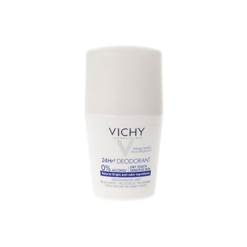 VICHY Desodorante 24H Tacto Seco es un desodorante de alta eficacia desarrollado por los laboratorios Vichy para ofrecer una protección duradera frente al mal olor durante todo el día. Su fórmula combina un activo antiolor de origen natural que actúa directamente sobre las bacterias responsables del mal olor, proporcionando una sensación de frescura, limpieza y confort durante 24 horas completas.