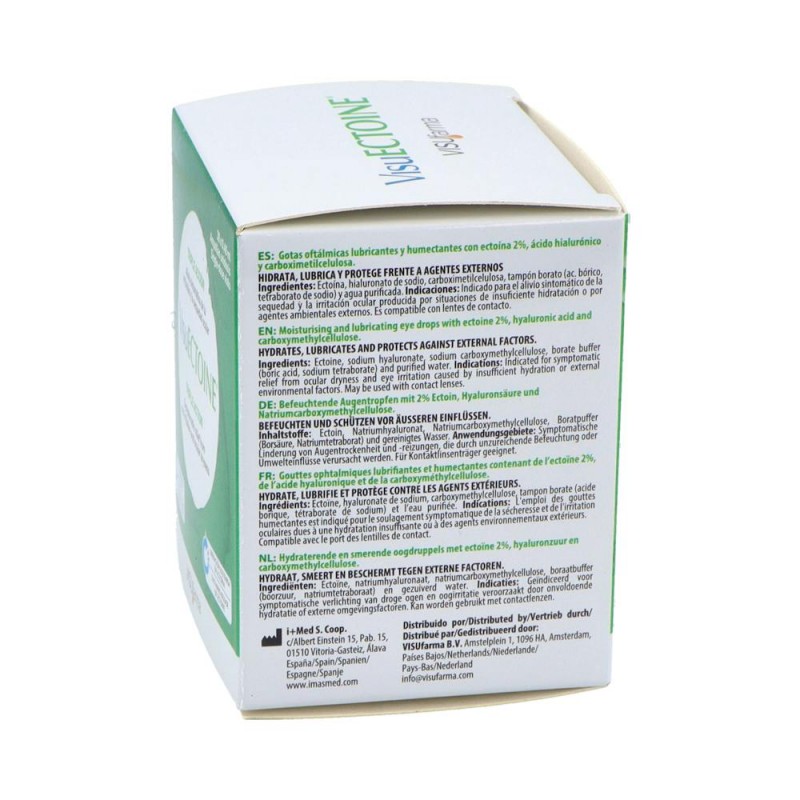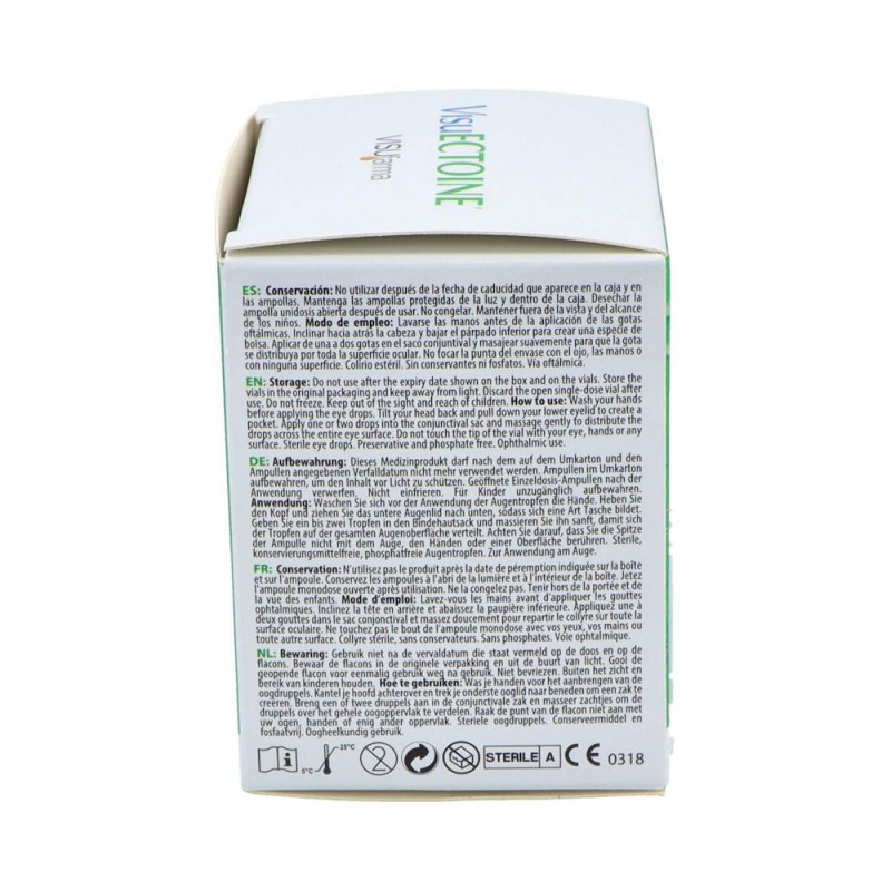 VisuECTOINE está indicado para el alivio sintomático de la irritación ocular y la sequedad causada por insuficiente hidratación o exposición a agentes medioambientales externos como viento, polvo, humo, aire acondicionado o calor seco. También es ideal para personas que sufren alergias oculares, ya que protege contra los alérgenos externos y reduce los síntomas asociados. Además, es compatible con lentes de contacto, lo que lo convierte en una solución versátil y segura para el cuidado ocular diario.
