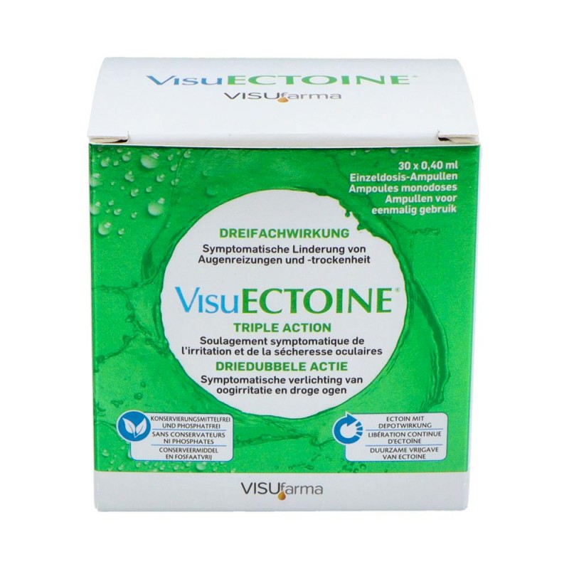 VisuECTOINE es la solución ideal para quienes buscan un colirio con acción múltiple que combina eficacia y seguridad. Su fórmula única con ectoína, carboximetilcelulosa sódica y ácido hialurónico ofrece una hidratación superior, protección contra alérgenos y alivio de la irritación ocular sin recurrir a conservantes agresivos.