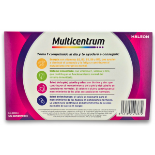 Multicentrum comprimidos es un complemento alimenticio con vitaminas y minerales que ayuda a cubrir los requerimientos nutricionales de adultos y adolescentes a partir de 12 años. 90 comprimidos. PROMOCIÓN VALIDA...