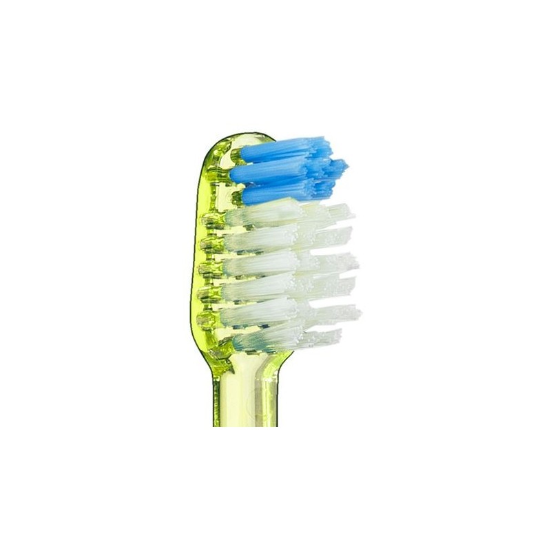 Cepillo de cabezal pequeño y filamentos redondeados en sus extremos para no dañar las encías.