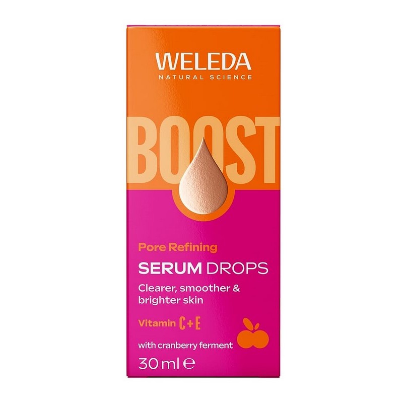Weleda Booster Perfeccionador es un concentrado facial formulado para unificar y alisar la piel. Su innovadora combinación de vitamina C, vitamina E y fermento de arándano ayuda a afinar los poros, aportando un aspecto más liso, uniforme y luminoso. Con su efecto destello, potencia el resplandor natural de la piel y reduce la apariencia de manchas, dejando el rostro radiante y saludable desde el primer uso.