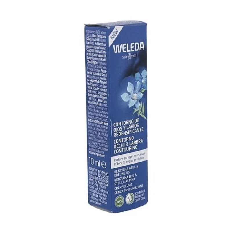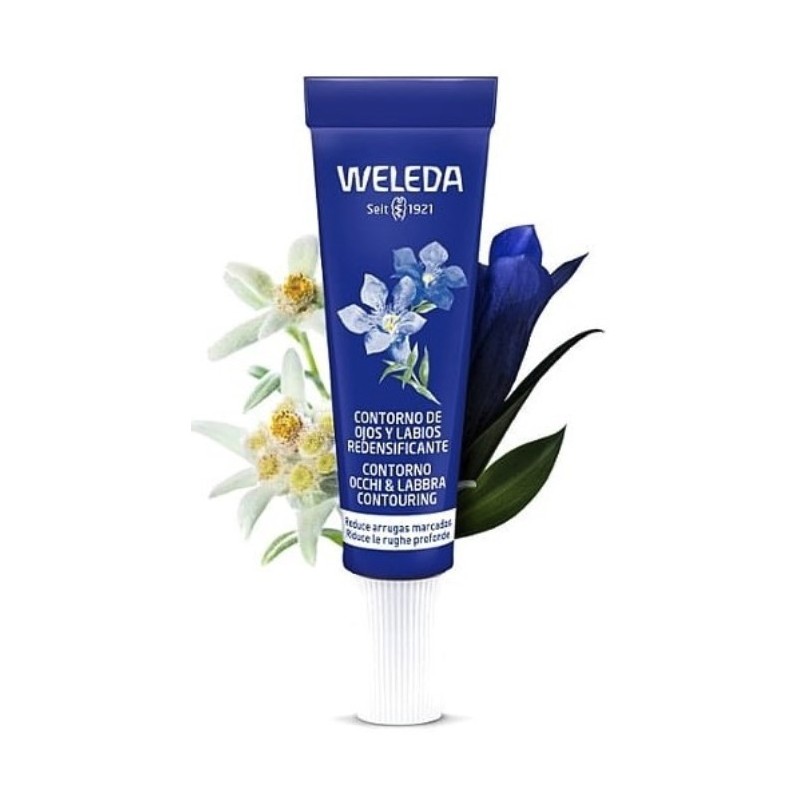 Weleda Contorno de Ojos y Labios Redensificante es un tratamiento cosmético 100% natural certificado formulado para cuidar de manera específica la piel delicada del contorno de los ojos y los labios. Su innovadora fórmula con el exclusivo Collagen+ Active Complex actúa eficazmente para reducir arrugas, bolsas y ojeras, aportando firmeza y luminosidad a las zonas tratadas. Se trata de un producto que combina la acción revitalizante de plantas medicinales como la Genciana Azul bio, el Edelweiss bio y la Centella asiática, proporcionando una piel más lisa, hidratada y redensificada.