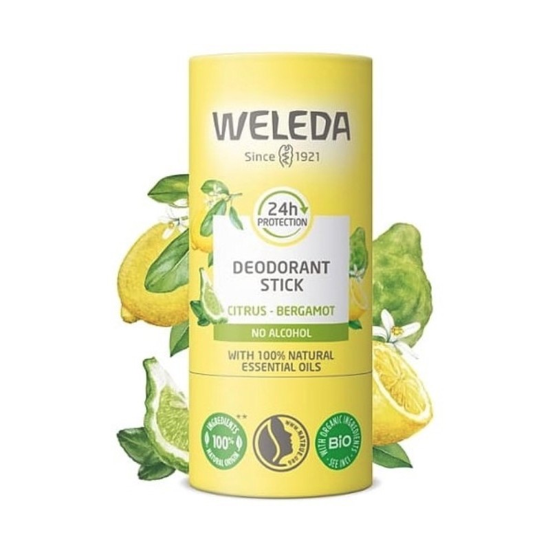 Weleda Desodorante Stick Citrus Bergamota es un desodorante sólido 100% natural con una fórmula eficaz durante 24 horas, que neutraliza los olores corporales sin interferir con las funciones naturales de la piel.