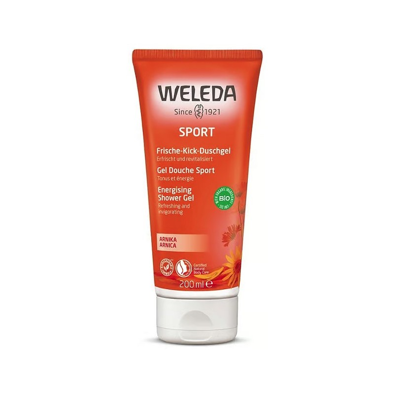 Weleda Gel de Ducha Sport de Árnica es ideal para recuperar el equilibrio muscular, refrescar el cuerpo y revitalizar la mente después del ejercicio.