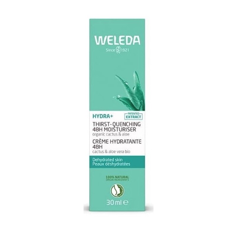 Weleda Hidra+ Crema Hidratante 48H es una crema facial muy hidratante de textura ligera y rápida absorción, formulada con ingredientes de origen natural como el extracto de cactus patentado de Weleda y aloe vera. Está diseñada para proporcionar una hidratación inmediata y duradera de hasta 48 horas, devolviendo a la piel su frescura, suavidad y aspecto saludable.