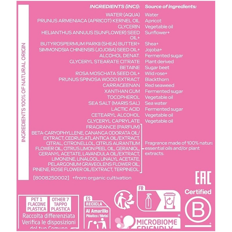 - Otros ingredientes 100% naturales que respetan la barrera cutánea y la microbiota de la piel.