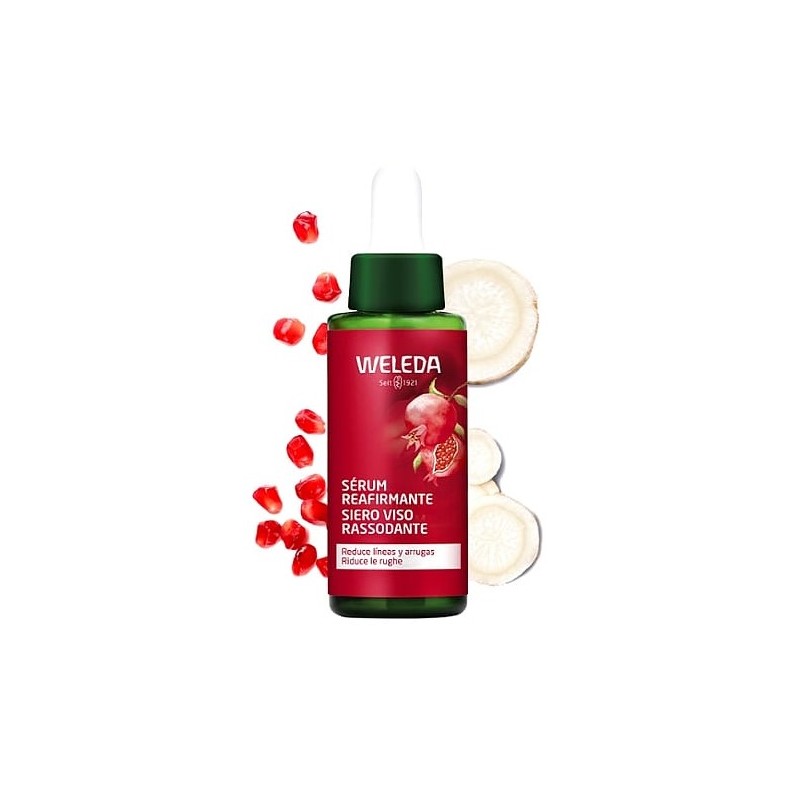 Weleda Sérum Reafirmante de Granada y Péptidos de Maca es un tratamiento cosmético altamente eficaz diseñado para combatir los signos del envejecimiento cutáneo y revitalizar la piel de manera natural.