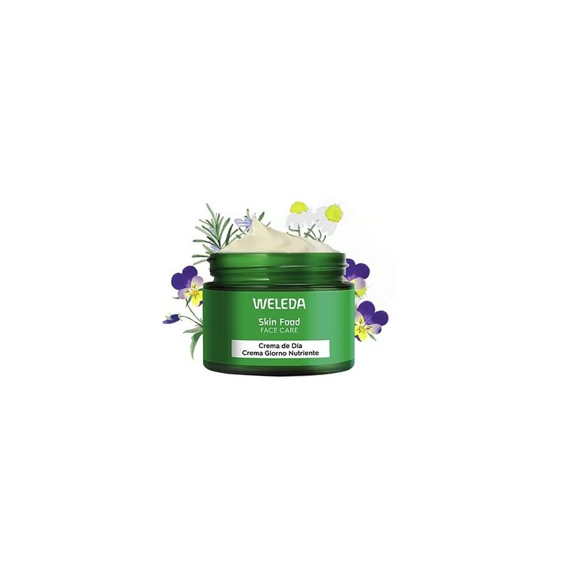 Weleda Skin Food Crema Día combina extractos botánicos de pensamiento, caléndula y manzanilla orgánicas, junto con hoja de olivo orgánico, escualeno y aceite de girasol orgánico. Todos estos ingredientes trabajan en sinergia para nutrir e hidratar profundamente la piel.