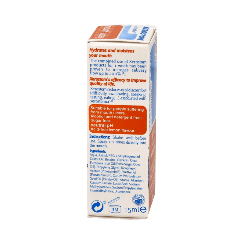 Xerostom Boca Seca Spray es un innovador sustituto salival diseñado para proporcionar hidratación inmediata en casos de sequedad bucal o xerostomía.