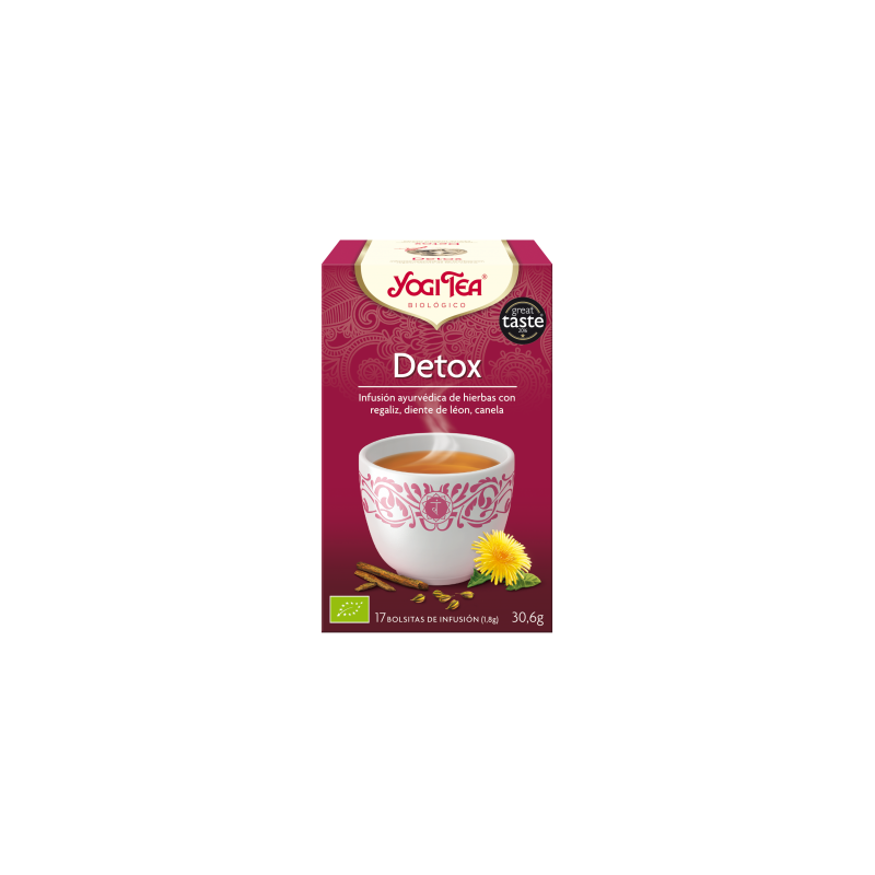 YOGI TEA® Detox es una infusión ayurvédica de hierbas con Diente de León, Regaliz y Canela.