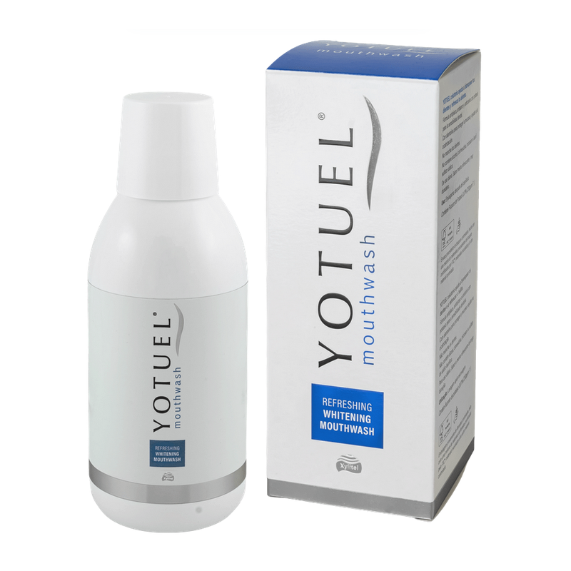 YOTUEL Colutorio Blanqueador es un colutorio reparador de uso diario diseñado para complementar tu higiene bucodental con una acción blanqueadora y protectora.